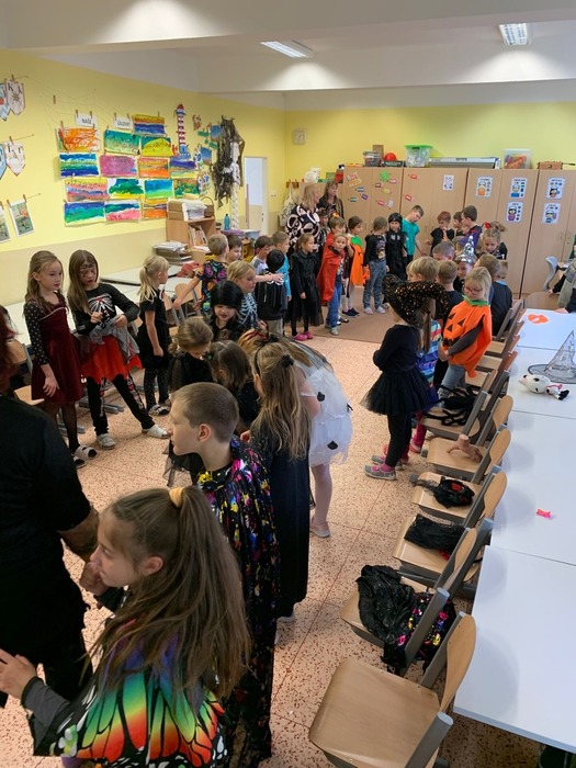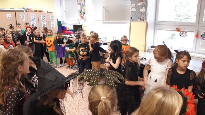 V pátek odpoledne se školní družina proměnila v rej strašidel. Děti si užily veselé halloweenské tancování, soutěže i sladké odměny. Nechyběly originální kostýmy, hudba a spousta zábavy.
