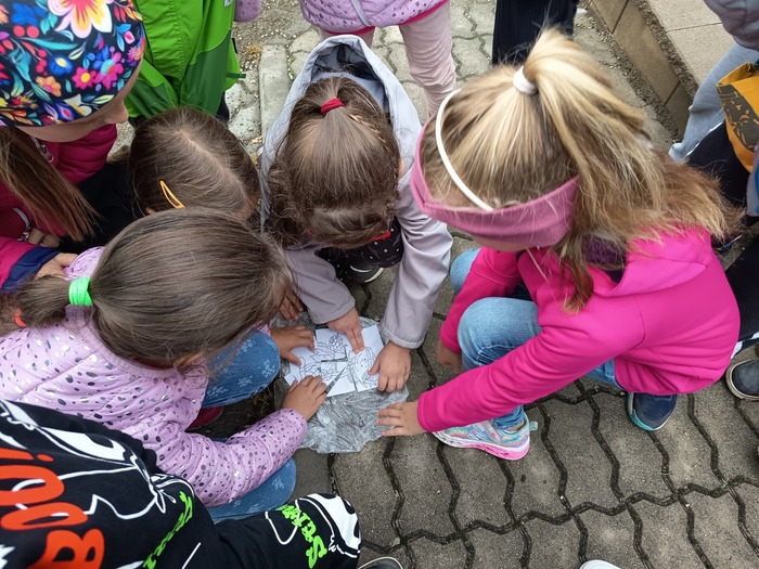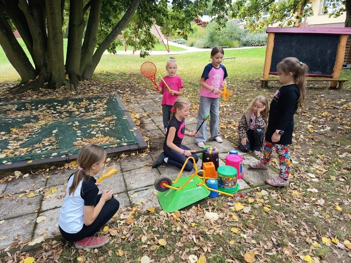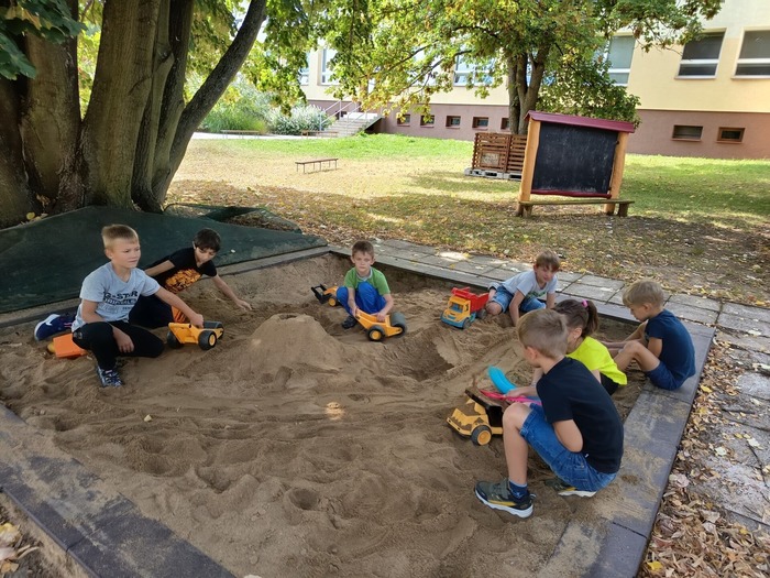 Po seznamovacích a adaptačních hrách trávily děti spoustu času na školní zahradě, kterou si velmi oblíbily. Zvládly si vytvořit podzimní výrobky pro radost, stavět ze stavebnic a zahrát si různé zajímavé deskové hry. V závěru měsíce se vydaly na ŠIPKOVANOU, kde plnily úkoly a hledaly poklad. Všichni jsme si to náramně užili a poklad spravedlivě rozdělili.