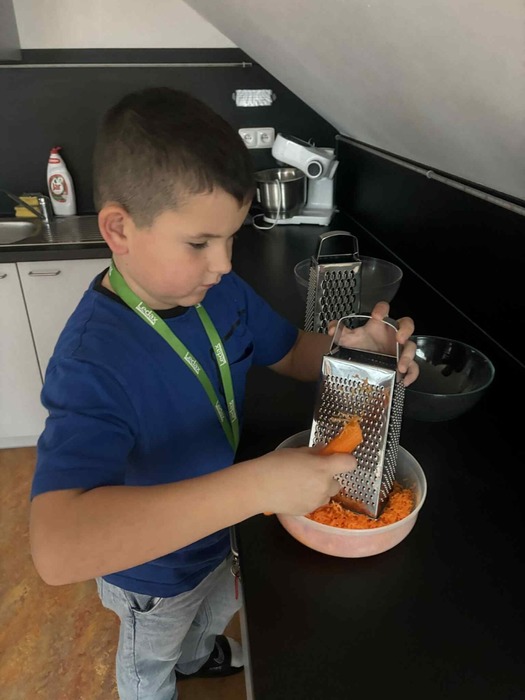 Na Prima vařečce jsme se tentokrát pustili do sladkého pečení. Děti si samy připravily citronové a kakaové sušenky i voňavé medové perníčky. Společně jsme váleli těsto, vykrajovali tvary a pekli, až se celá kuchyň provoněla dobrotami. Na závěr jsme si na nich všichni pochutnali – a nezapomněli jsme ani na ostatní děti, které jsme na vánoční diskotéce obdarovali medovým perníčkem.