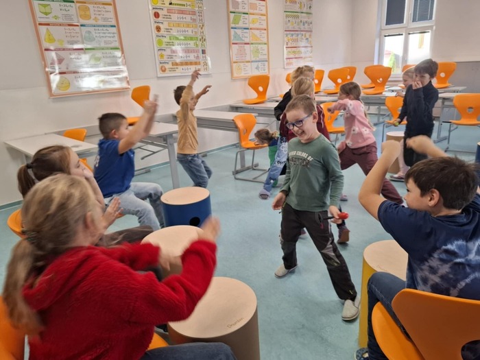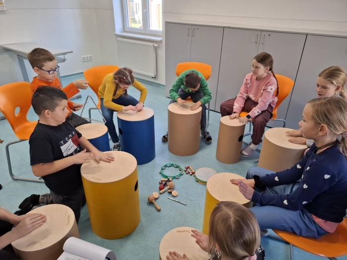 Každý týden ožívá školní družina hudbou, rytmem a smíchem během aktivity Veselá notička. Děti si s nadšením zkoušejí hru na drumbeny, zapojují se do rytmických a pohybových her a objevují kouzlo hudebních příběhů s doprovodem nástrojů. Aktivity rozvíjejí hudební sluch, rytmické cítění i spolupráci ve skupině. Nechybí smích, radost z pohybu a prostor pro tvořivost. Veselá notička je pro děti nejen zábavou, ale i cestou k hudbě a společným zážitkům.